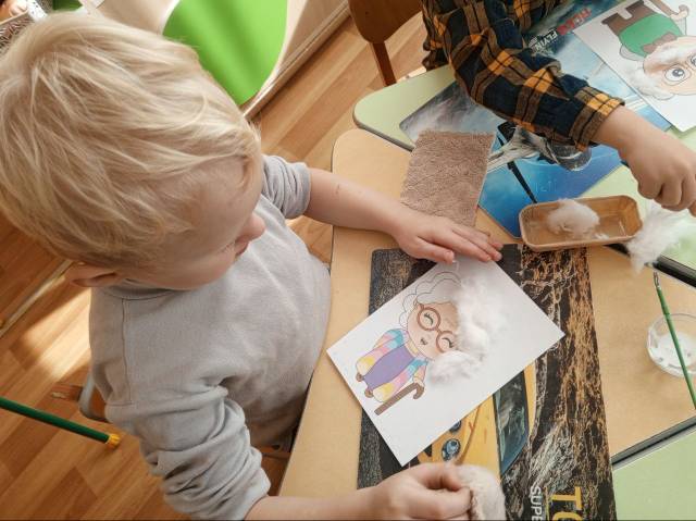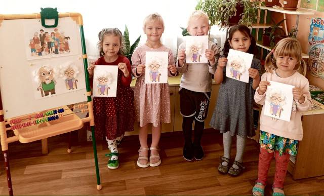Ольга Владимировна познакомила с праздником «Международный день пожилого человека», провела беседы на тему: «Кто такой пожилой человек», «Как я помогаю своим бабушке и дедушке». Ребята весело тгадывали загадки о бабушках и дедушках. В завершении занятия ребята сделали аппликацию «Веселый дедушка и бабушка».