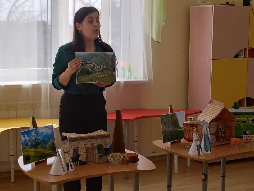 Педагог Солодовниченко Лиля Аблякимовна для более подробного ознакомления детей с такой обширной темой подготовила макеты жилья, одежды, национальных блюд.