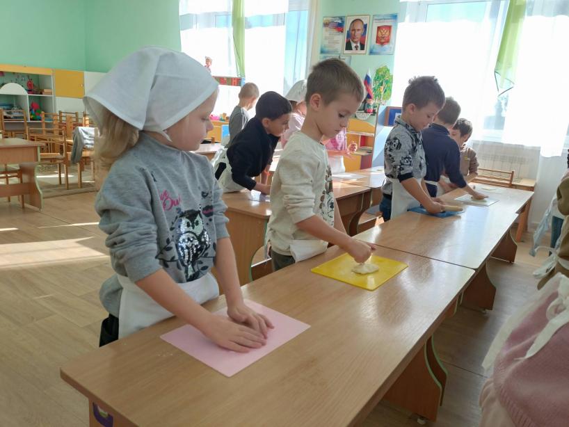 Своими маленькими ручками ребята старательно раскатывали тесто.