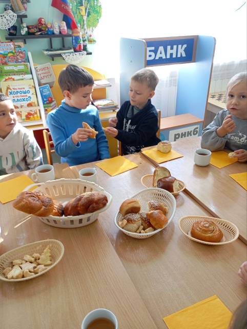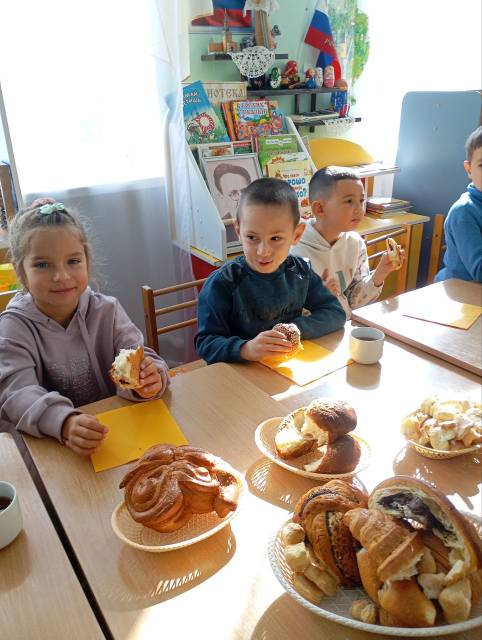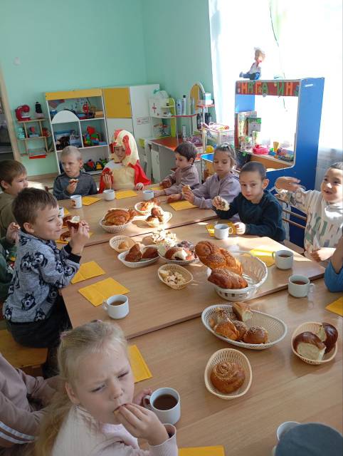После веселого развлечения к Всемирному дня хлеба для ребят подготовительной группы «Неваляшки» Елизаветой Эдуардовной было организовано чаепитие, наполненное ароматами свежеиспечённого хлеба и вкуснейшими угощениями.