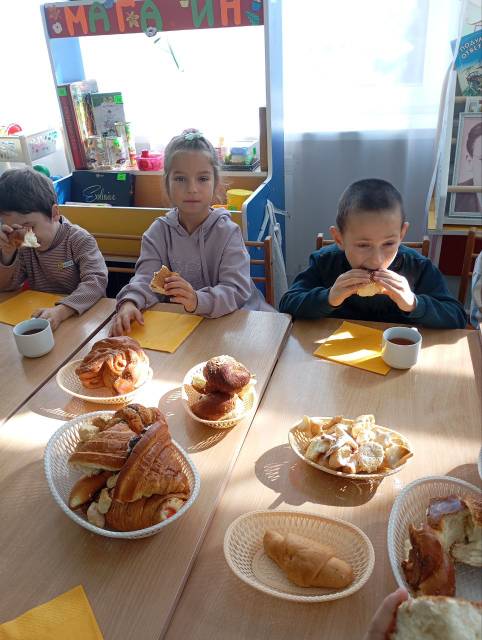 Каждый ребёнок смог попробовать разные виды хлебобулочных изделий — ржаной, пшеничный хлеб, ароматные круасаны, булочки, рогалики.