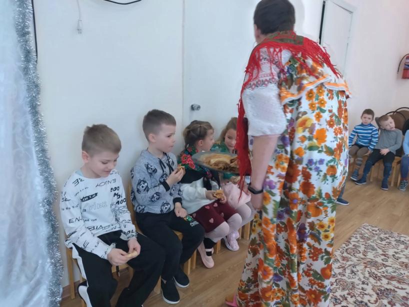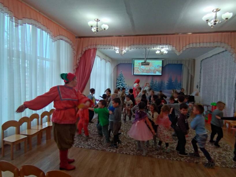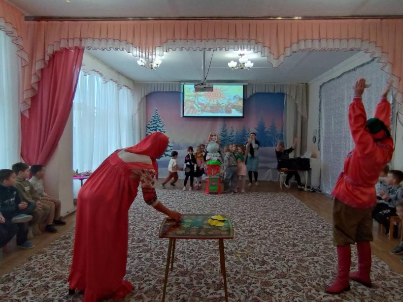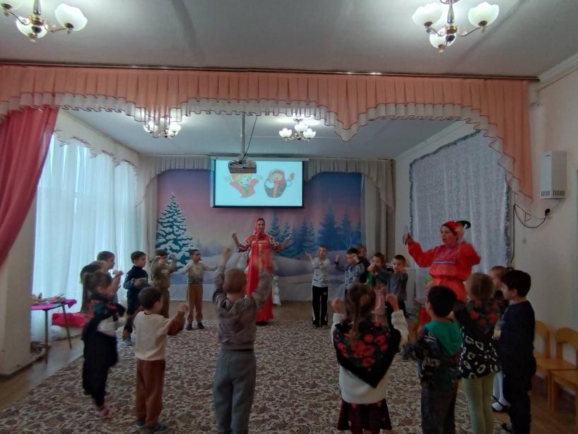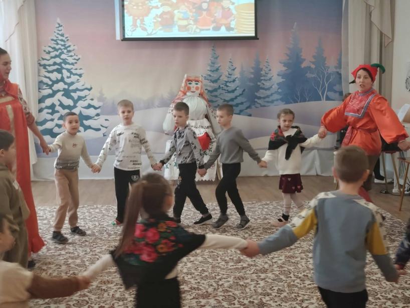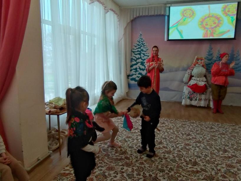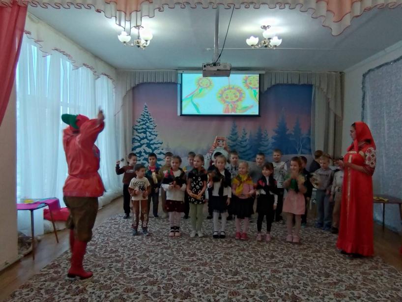 Ребята с румяными щечками, в ярких нарядах и платках, так же вместе с Скоморохом и Матрешкой в хороводе, завлекая в весёлую пляску весь детский сад, а затем играли в веселые русские народные игры. Дети старались показать свою смекалку и быстроту, а гости в свою очередь старались повеселить детей. Во всех играх-забавах побеждала дружба! Никто не скучал, все только веселились!