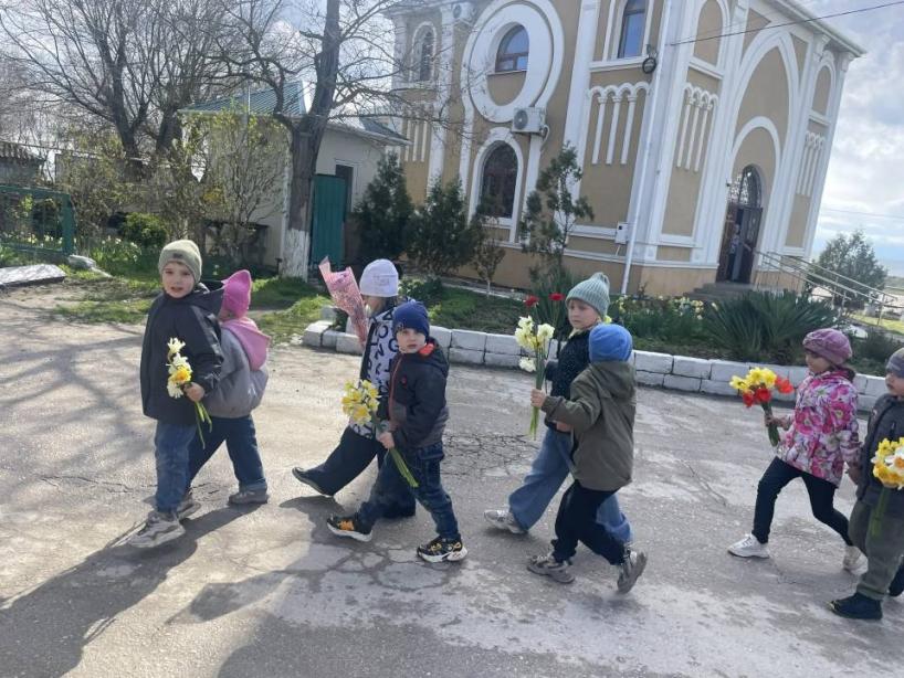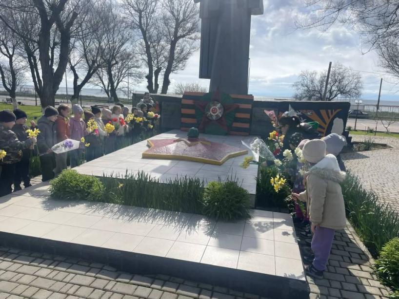 Сегодня старшая группа «Капитошки» и подготовительная группа «Неваляшки» торжественно возлогали цветы к подножью памятника-братской могиле воинов-десантников, посвященное героическому подвигу советского народа в годы Великой Отечественной войны и Дню освобождения города Феодосии от немецко-фашистских захватчиков.
