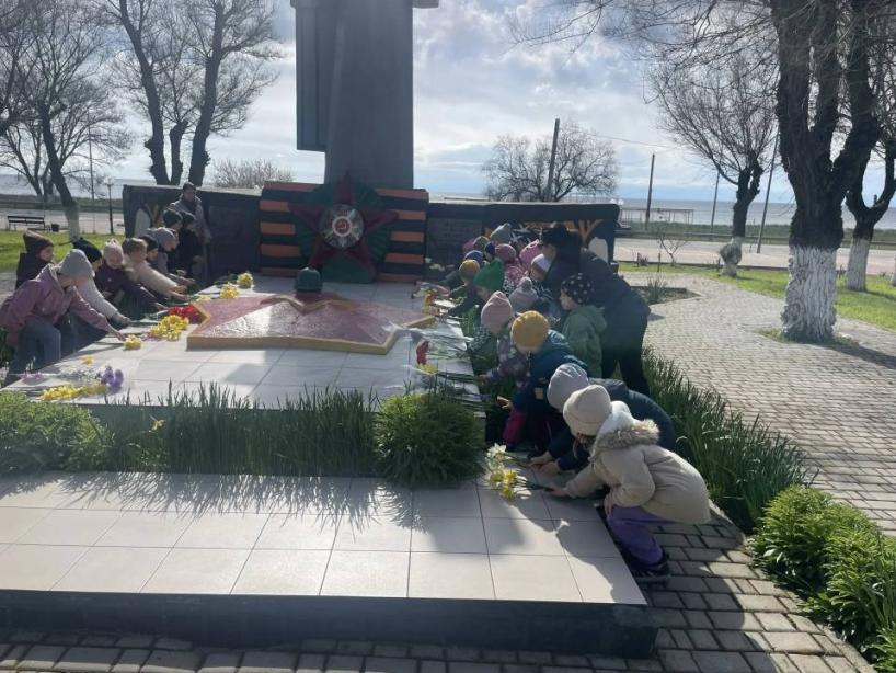 Педагоги- Черных Елизавета Эдуардовна и Солодовниченко Лиля Аблякимовна объяснили детям Что это дань благодарности всем, кто погиб на фронтах, память о каждом солдате, защищавшем нашу Родину.